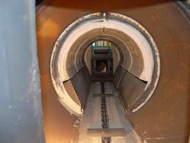 Selbst schwer vergasende Brennstoffe werden langsam mit der patentierten Kettenentaschung durch den Kessel zum Entaschungsschacht gefördert.